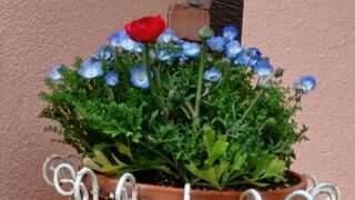 花壇のネモフィラを我が家のクロネコは愛でるのだが、もう好きという感情だけではないようだ。嚙みむしる上に頬をスリスリ、枕にして目を閉じる。マタタビのようなものなのだろうか。