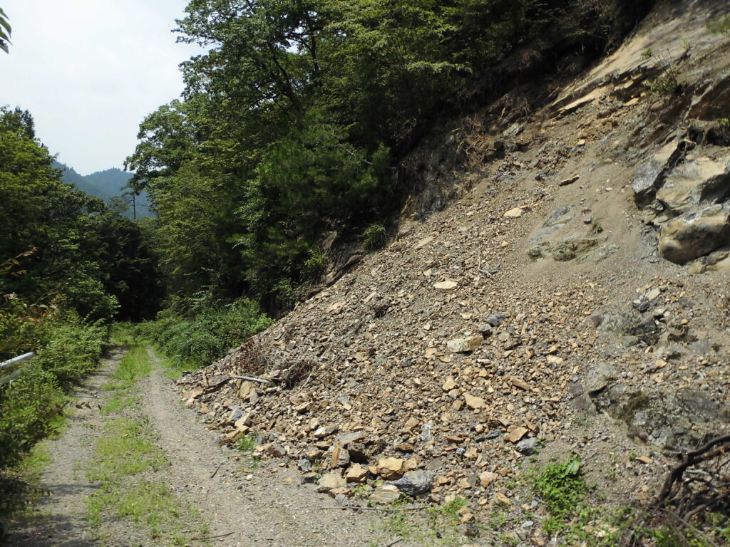 まさしく道なき道。一応ガードレールはある。あの日は暑かった。