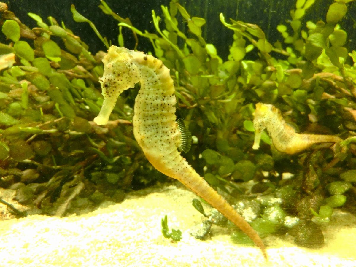 クラゲ用のタンクだが、最初に飼育したのはゼブラダコだったのは、観察に適した形態だからだった。ゼブラオクトパスはすぐに大きくなったので、オーバーフローの濾過を担う、サブタンクへ移されたので、しばらくは誰もいないタンクとなっていたのだが、そこで飼育を始めたのはクラゲではなく、タツノオトシゴだった。タツノオトシゴも海水魚ならではの特異な形状と生活様式を持っており、やはり飼育欲の高い生物だ。