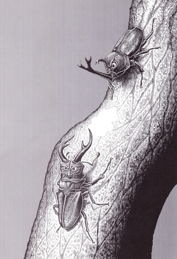 クワガタの顔が熊谷直実、カブトの顔が平敦盛ではないのだろうか。本人から聞いたわけではないので推測にはなってしまうが、クワガタの方が堂々とした顔付きのように見えるのは多くのヒトが指摘している。