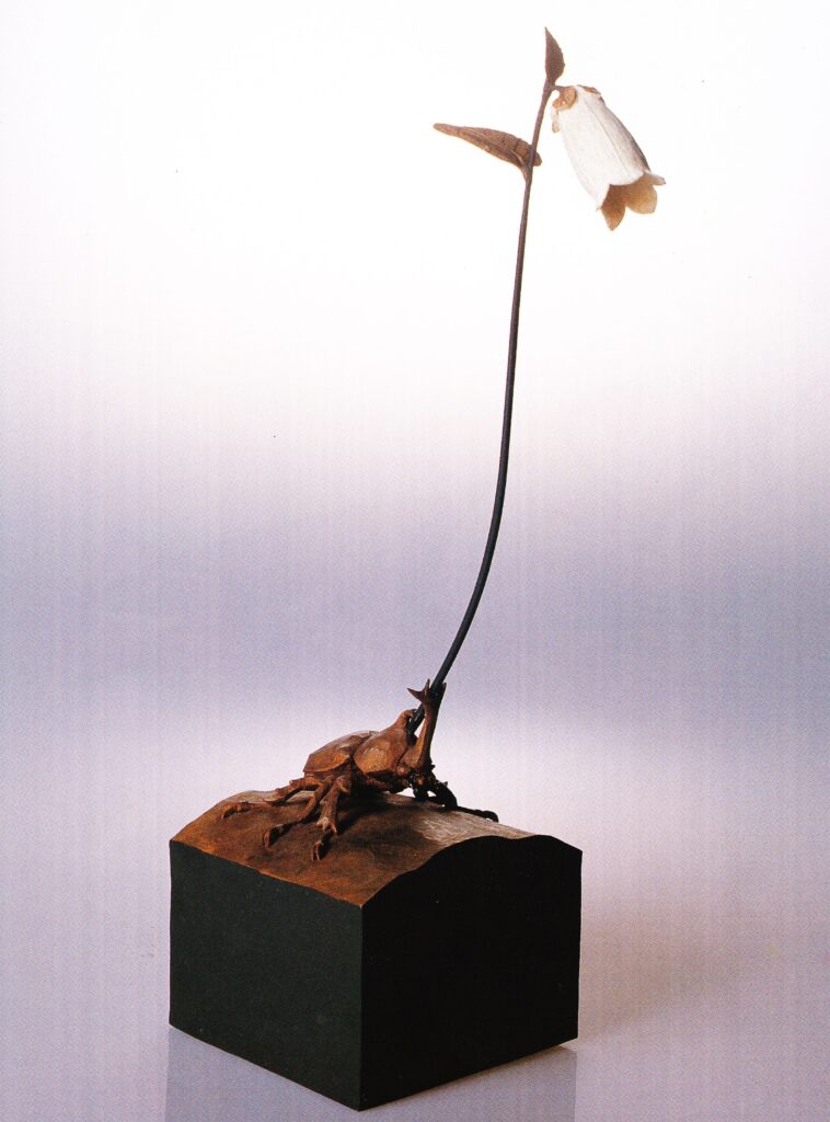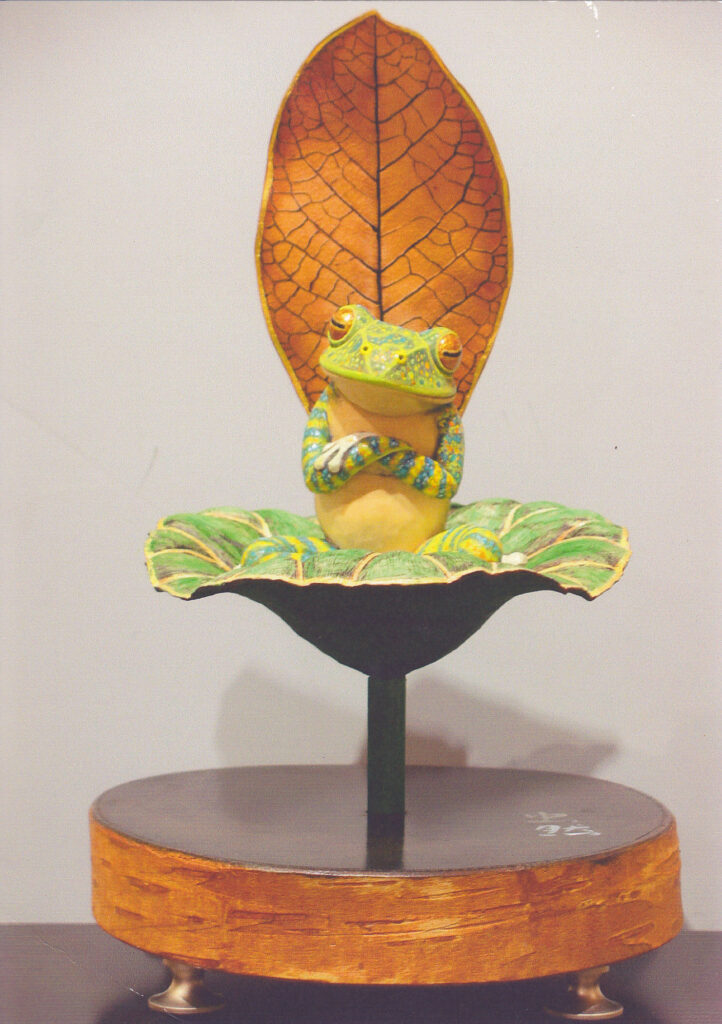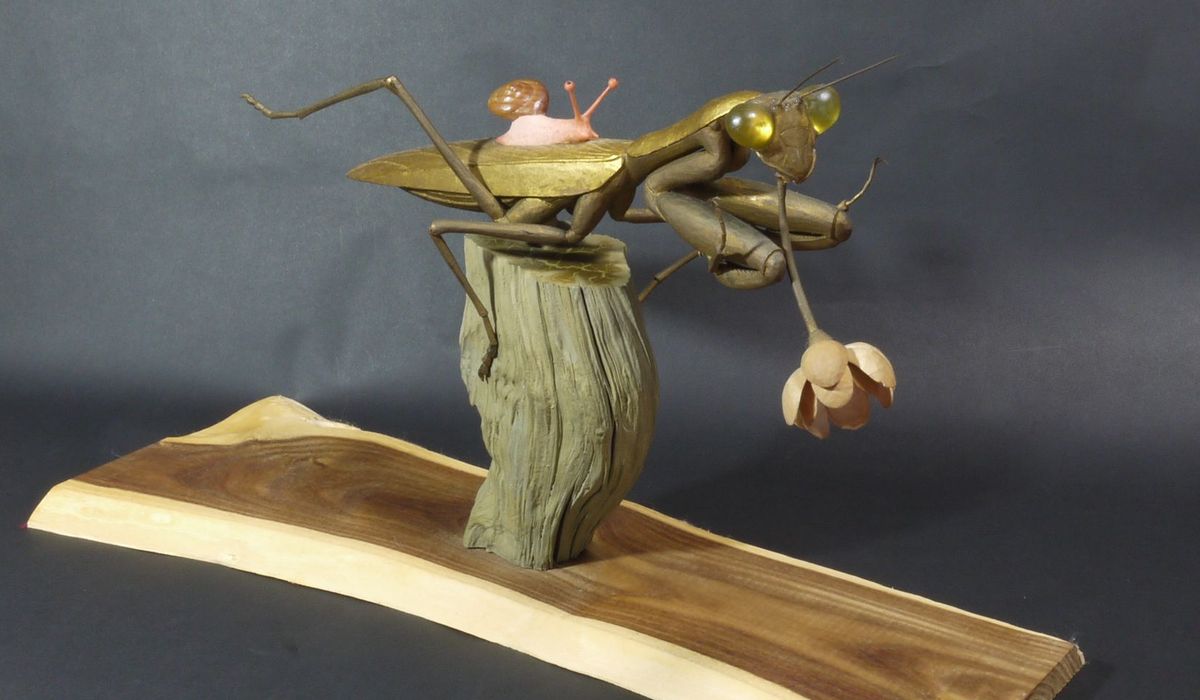 仏師の持つ哲学的感性と、水木しげる氏のアシスタント時代に学んだ遊び心が見事にマッチし、昆虫や鳥の木彫に打ち込むことになる。話は変わるが、アシスタント時代に先輩だったのが、一部に熱狂的なファンをもつ漫画家のつげ義春氏。本格的な仏師になった後も尊敬していたとのこと。つげ氏の独特のマンガも哲学的であり、その感性や表現から受けた影響も大きかったはず。我々凡人には計り知れない世界を共有していたのだろう。