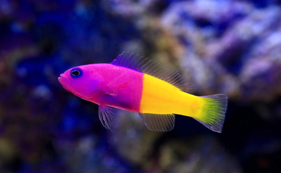 多くの海水魚が混泳する水槽でも一際目を惹く存在なのがロイヤルグラマー
