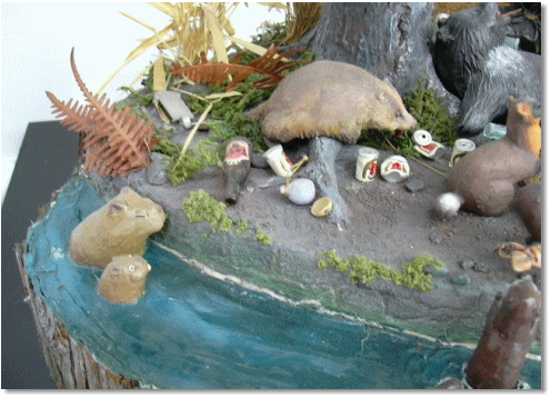 もう実際にその姿を見ることのできないニホンカワウソも活き活きとしている。 |
