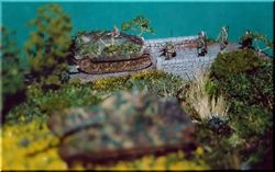 終戦間近の敗色濃い春、欧州のどこかの花畑(明と暗)を撤退するドイツ軍ていう所ですか。