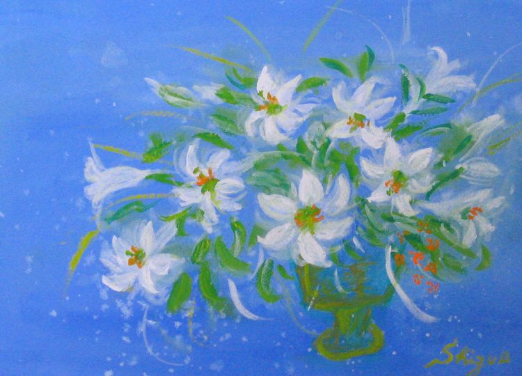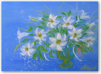こちらのユリはバックがはっきりとした色なので、コントラストがつき違う趣があります。 |