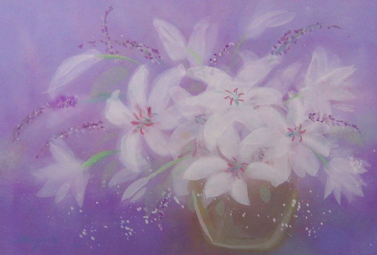 ユリは輪郭のはっきりとした花ですが、落ち着いた雰囲気をかもし出しています。 |